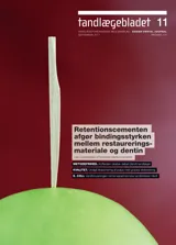 Introduktion – Såvel udbuddet af restaureringsmaterialer som udbuddet af retentionscementer stiger til stadighed. Indikationsområderne for de mange typer af materialer overlapper delvis, mens kompleksiteten i deres håndtering varierer meget. Formålet med denne in vitro-undersøgelse var at sammenligne forskellige typer retentionscementer, hvad angår deres evne til at binde forskellige, indirekte fremstillede restaureringsmaterialer til dentin. Materiale og metoder – Cylinderformede prøver blev fremstillet af seks restaureringsmaterialer (guld, titan, feldspatisk porcelæn, glaskeramik, zirkoniumdioxid og komposit plast). Cylindernes ene endeflade blev slebet og sandblæst. Herudover blev cylinderne af feldspatisk porcelæn og glaskeramik ætset med flussyre og silaniseret. Cylinderne blev cementeret til slebne, plane dentinoverflader med otte forskellige retentionscementer (en zinkfosfatcement (DeTrey Zinc), en konventionel glasionomercement (Fuji I), en plastmodificeret glasionomercement (Fuji Plus), en konventionel plastcement (Variolink II), to selvætsende plastcementer (Panavia F2.0 og Multilink) og to selvadhærerende plastcementer (RelyX Unicem Aplicap og Maxcem)). Styrken af bindingen mellem restaureringsmateriale og dentin blev målt efter opbevaring af prøvelegemerne (n = 8 pr. gruppe) i 37° varmt vand i en uge, og brudtypen blev undersøgt i stereomikroskop. Resultater – Bindingsstyrken afhang af såvel typen af restaureringmateriale som typen af retentionscement. Zinkfosfatcementen og de to glasionomercementer gav de laveste bindingsstyrker, mens de højeste bindingsstyrker blev opnået med de to selvætsende plastcementer og den ene af de to selvadhærerende plastcementer. Brudtypen afhang generelt af restaureringsmaterialet. Konklusion – Bindingsstyrken mellem restaureringsmateriale og dentin afhang i højere grad af retentionscementen end af restaureringsmaterialet.